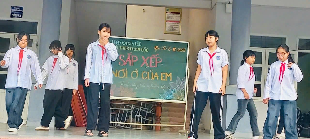 Sáng ngày 08/12/2025 một không gian sống gọn gàng – sạch đẹp chính là yếu tố giúp các em học sinh rèn luyện tính kỷ luật, thói quen ngăn nắp và biết tự phục vụ bản thân. Trong tiết Hoạt động trải nghiệm – hướng nghiệp sáng nay, các bạn học sinh khối 6 đã cùng với thầy cô tham gia hoạt động với chủ đề “Sắp xếp nơi ở của em”.