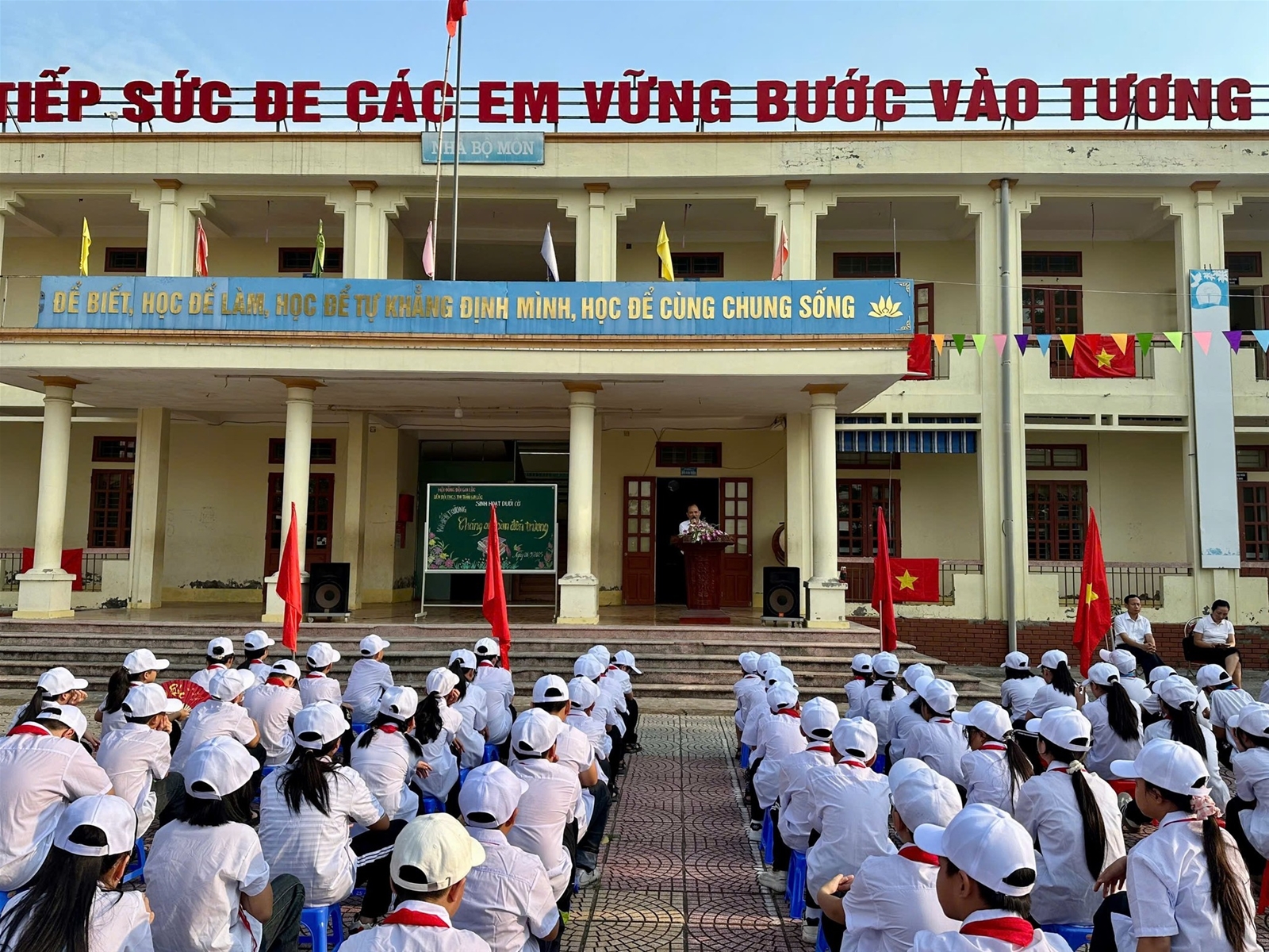 Sáng nay, ngày 8 tháng 9 năm 2025, tại Lễ chào cờ đầu tuần, trường THCS Thị trấn Gia Lộc đã phát động hưởng ứng “Tháng an toàn đến trường cho học sinh” theo chỉ đạo của Sở GD&ĐT Hải Phòng đến toàn bộ thầy cô và học sinh nhà trường. Đây là hoạt động có ý nghĩa thiết thực nhằm: