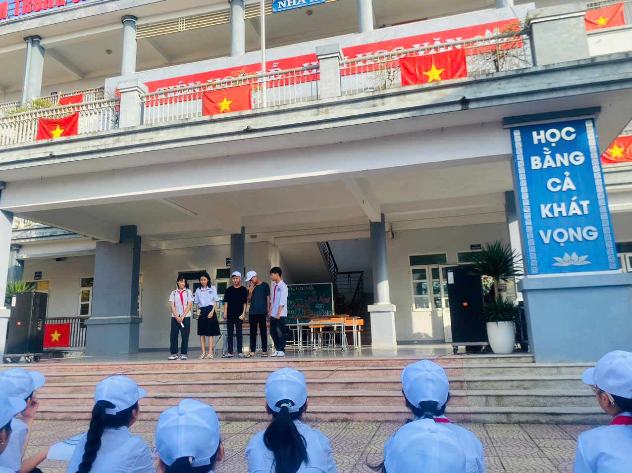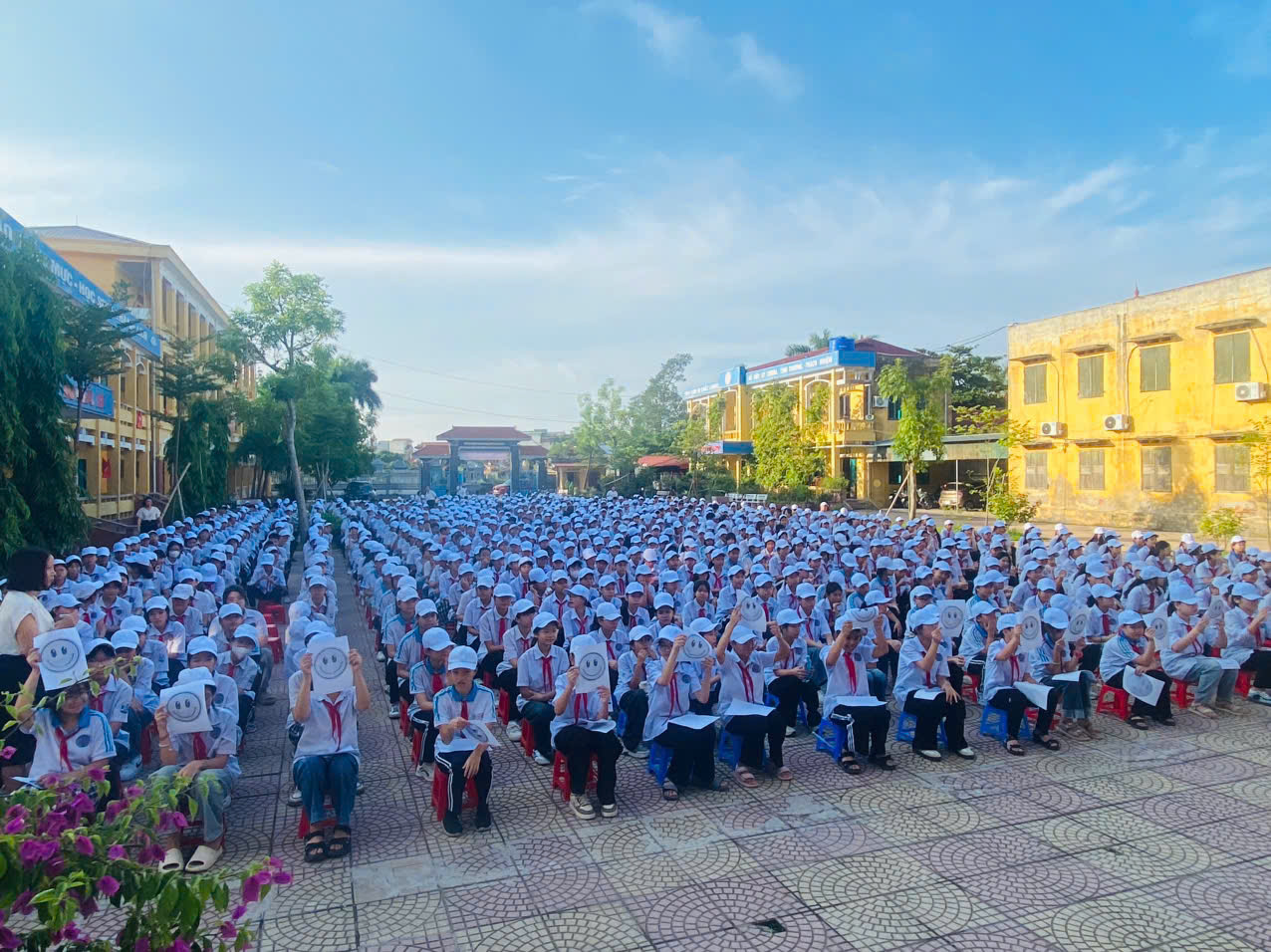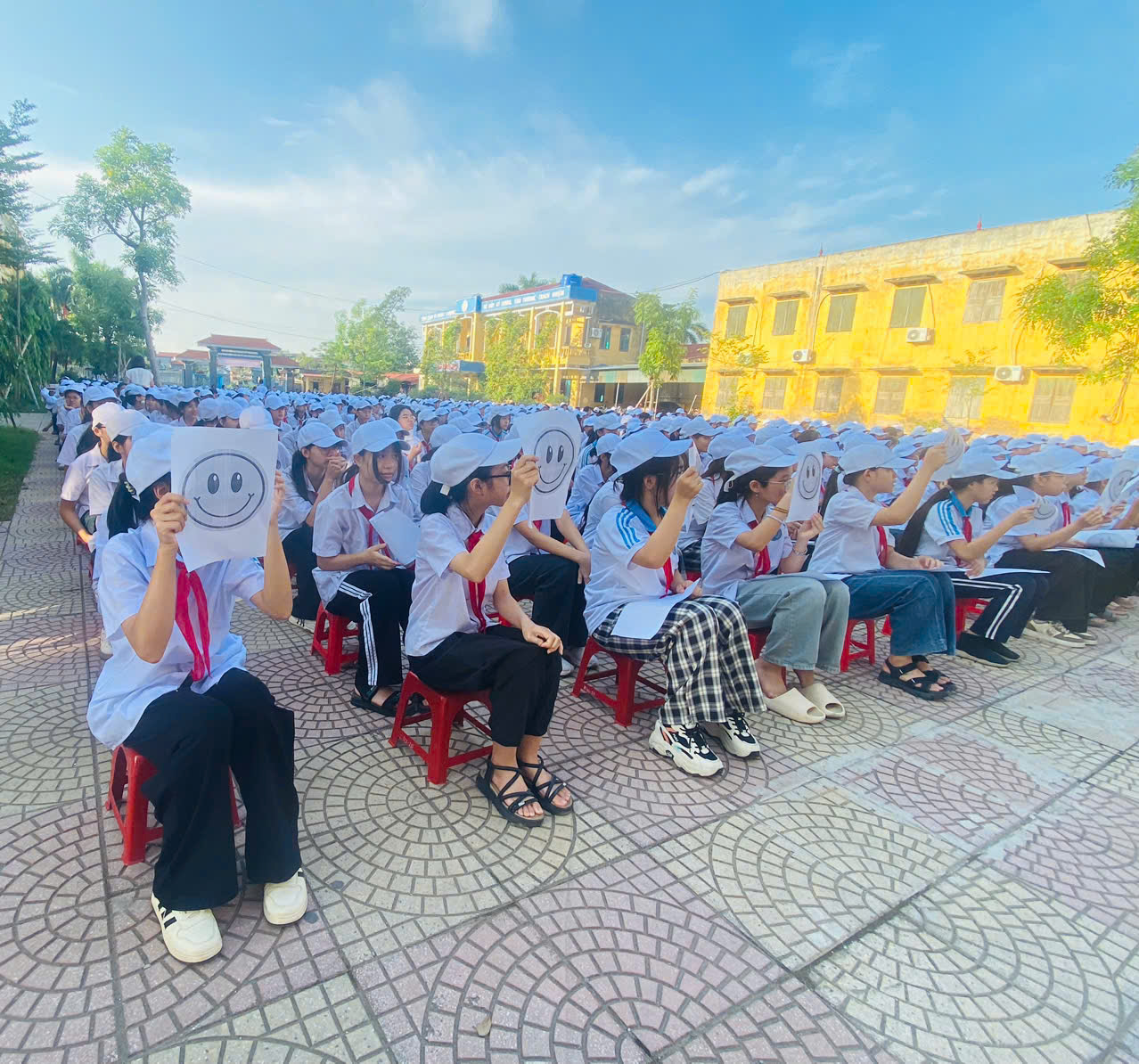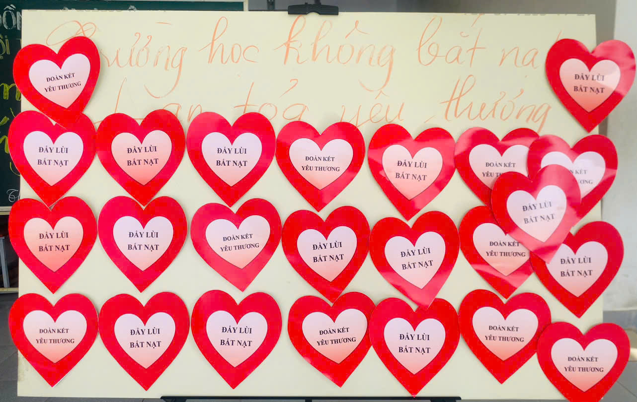 Đặc biệt, lễ cam kết “Trường học không bắt nạt – Lan tỏa yêu thương” đã trở thành điểm nhấn của buổi sinh hoạt. Đại diện học sinh các lớp dán những “trái tim yêu thương” lên bảng cam kết và cùng toàn trường hô vang khẩu hiệu: “Đoàn kết – Yêu thương – Đẩy lùi bắt nạt!”.