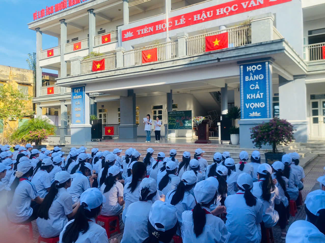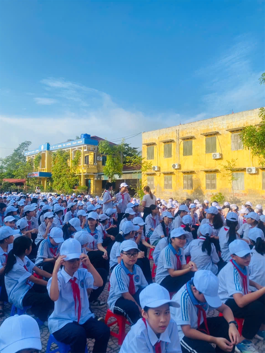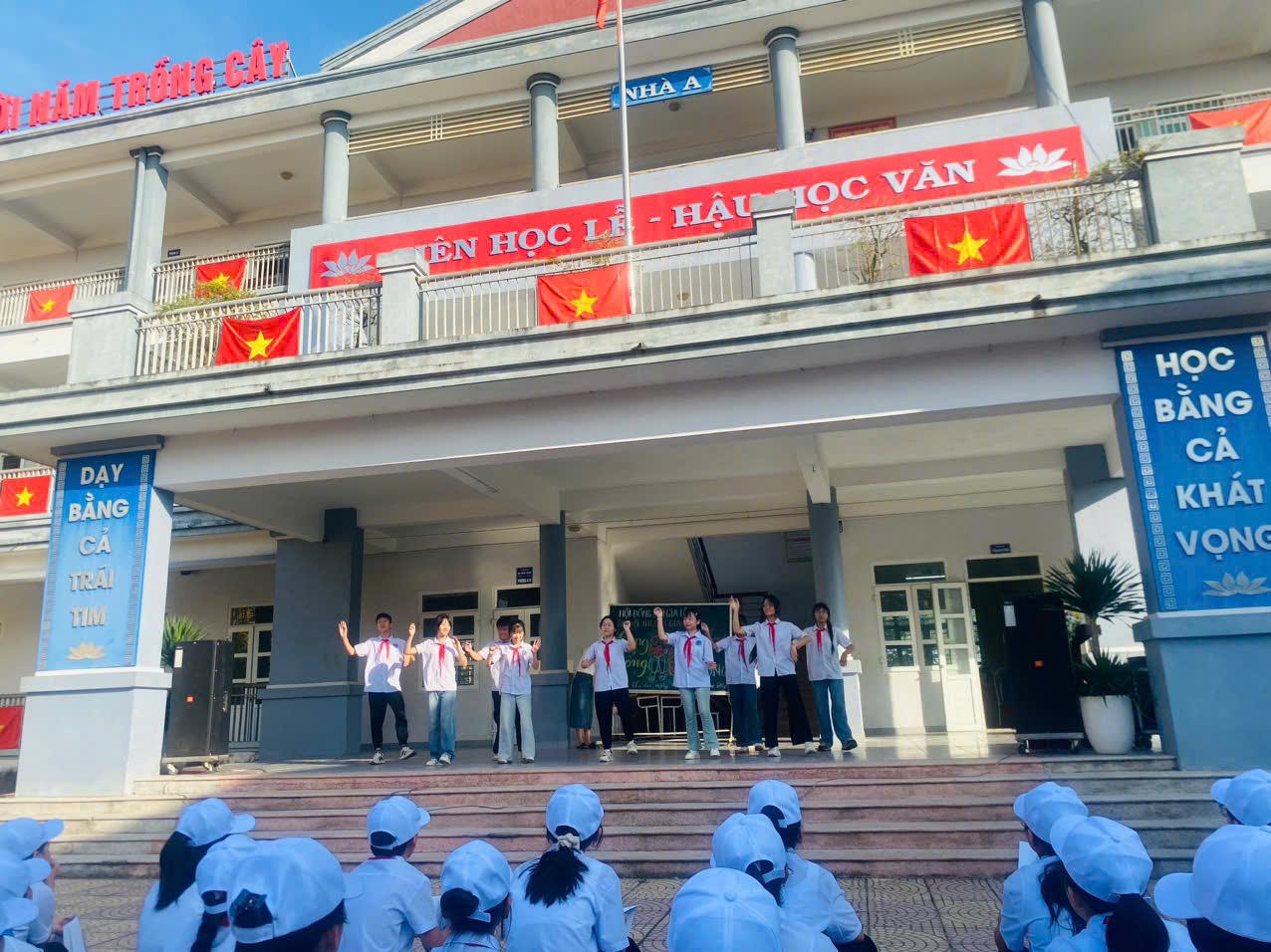 Đặc biệt, lễ cam kết “Trường học không bắt nạt – Lan tỏa yêu thương” đã trở thành điểm nhấn của buổi sinh hoạt. Đại diện học sinh các lớp dán những “trái tim yêu thương” lên bảng cam kết và cùng toàn trường hô vang khẩu hiệu: “Đoàn kết – Yêu thương – Đẩy lùi bắt nạt!”.