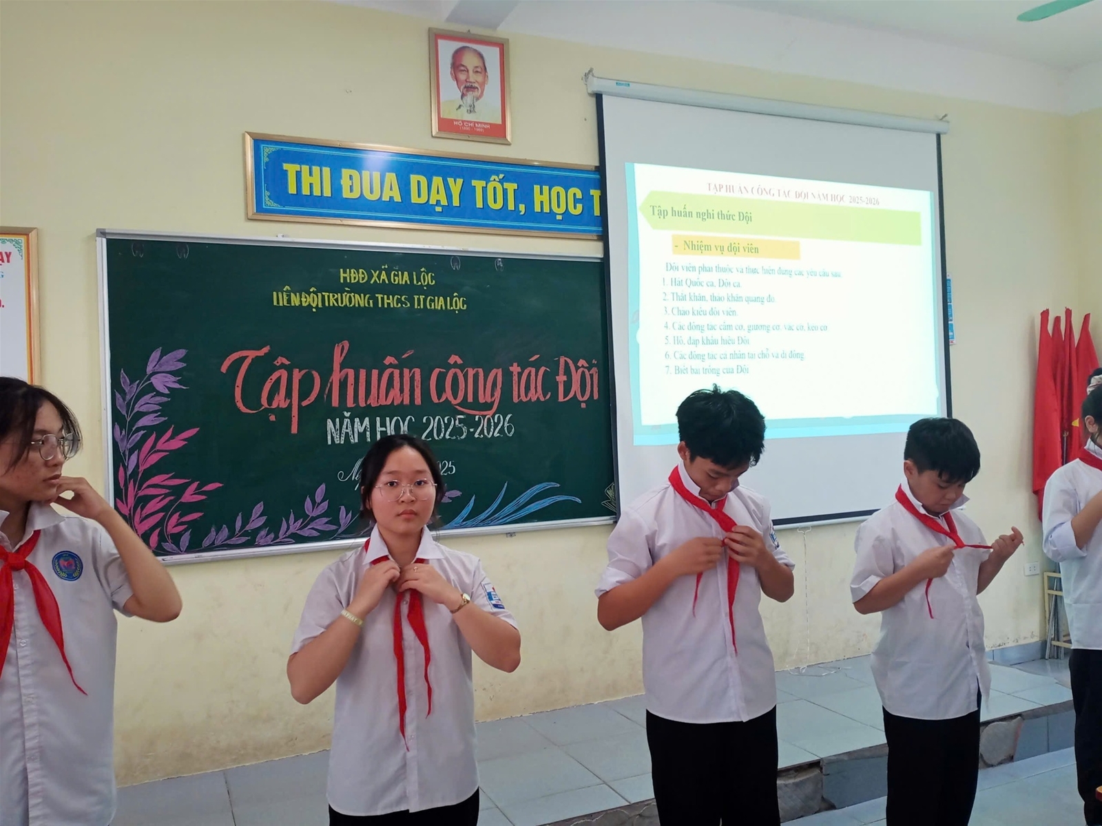 Cùng ngày, 33 em đội viên trong BCH Liên đội đã tham dự lớp tập huấn công tác Đội và nghi thức Đội viên nhằm nâng cao chất lượng đội ngũ, các em đều phấn khởi, sẵn sàng nhận nhiệm vụ, đoàn kết chung sức đưa chất lượng công tác Đội trong nhà trường ngày một phát triển, đúng mục tiêu "Thiếu nhi Gia Lộc vững bước tiến vào kỉ nguyên mới'!